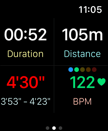 - When you've selected a target pace and run faster than that, the value of your current pace will be blue to easier distinguish when you're off-pace. Contrarily, it will turn red if you're running too slow. It will be white if you're inside your target range.